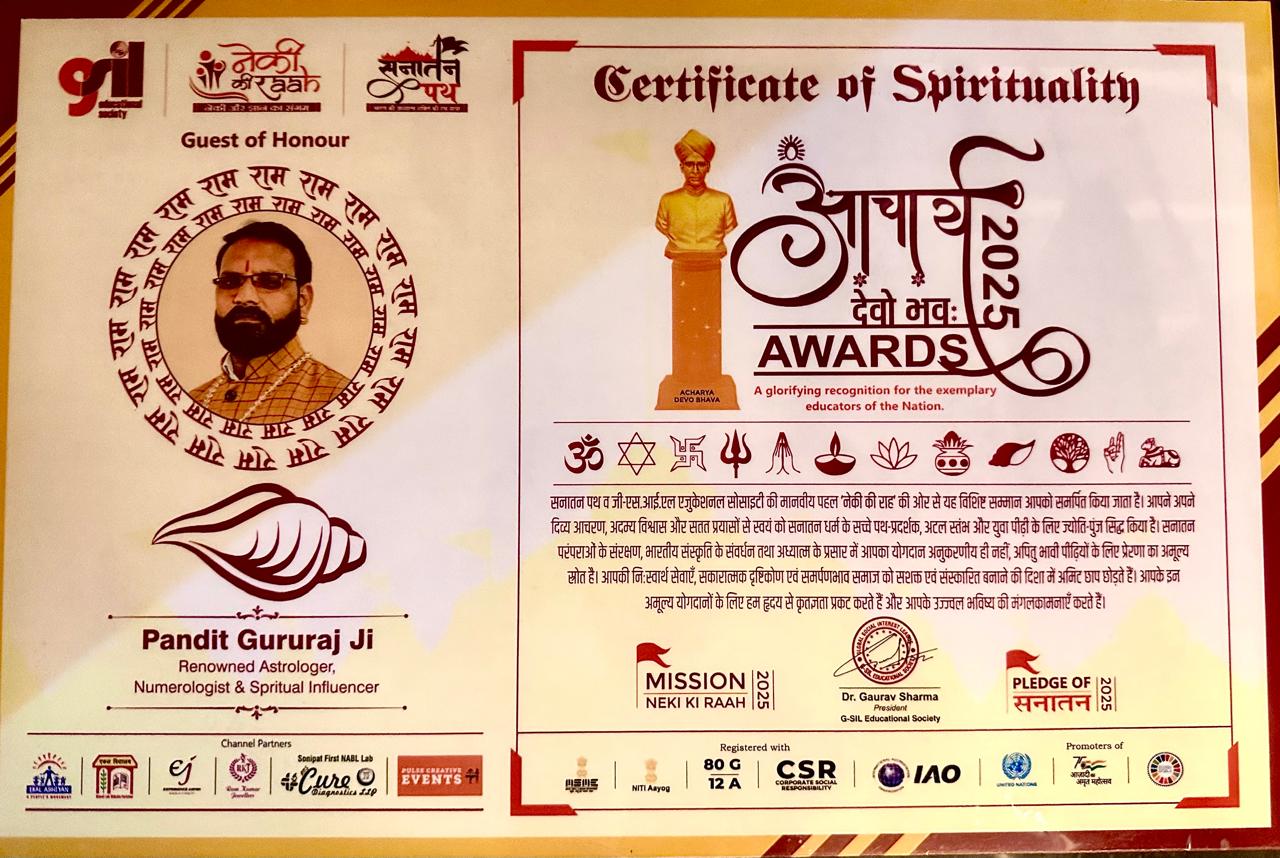 पण्डित गुरुराज जी विश्व प्रसिद्व भारतीय ज्योतिषी है। जो लाल किताब , वैदिक ,ज्योतिष वास्तु , अंक विद्या , तंत्र मंत्र यन्त्र , हस्तरेखा के क्षेत्र में महारथ हासिल किये हुए है। पण्डित जी को ज्योतिष का २० साल का तजुर्बा है। जिन्होंने हर उपाय को वैज्ञानिक दृष्टि से जांचा परखा है और फिर किसी पर अमल में लाया है ।